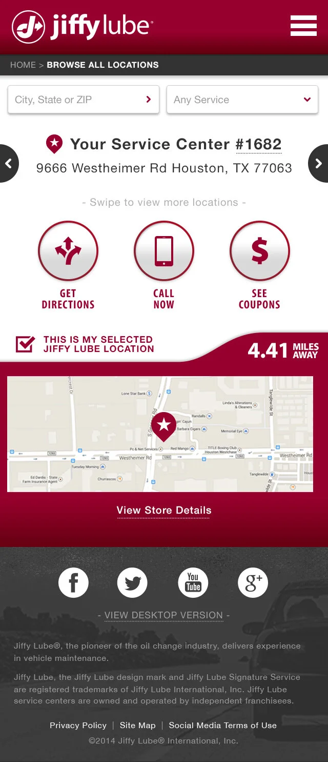 I worked in tandem with UX to redesign the Jiffy Lube mobile site to include location specific content and an elaborate consumer dashboard.