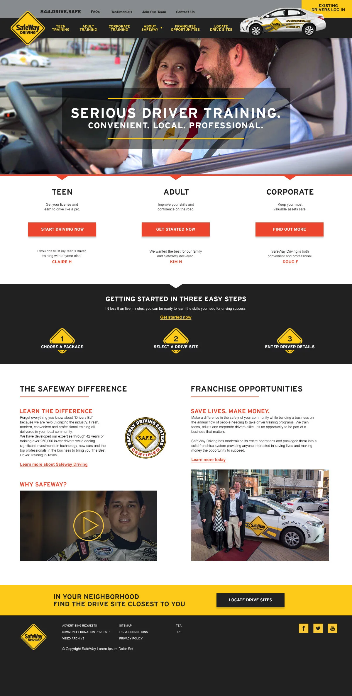 For the Safeway Driving School website redesign, the team was tasked with creating a website to appeal to three vastly different markets.